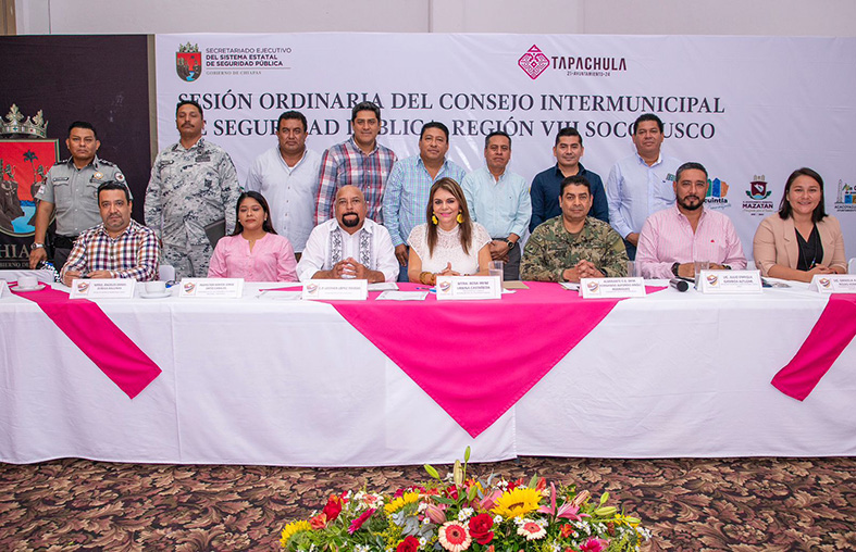 Durante la sesión en la que participaron los alcaldes y alcaldesas de Villa Comaltitlán, Manuel de Jesús Cruz Coutiño; de Unión Juárez, Isaías Verdugo Roblero; de Tuxtla Chico, Julio Enrique Gamboa Altúzar; de Metapa de Domínguez, Leonardo López Morales; de Huehuetán, José Manuel Ángel Villalobos; de Frontera Hidalgo, Juana Elizabeth de la Cruz Mazariegos y de Escuintla, Arlette Daniela Rojas Komukai, Urbina Castañeda, reconoció el compromiso y trabajo coordinado entre todas las instituciones de seguridad y los Ayuntamientos.