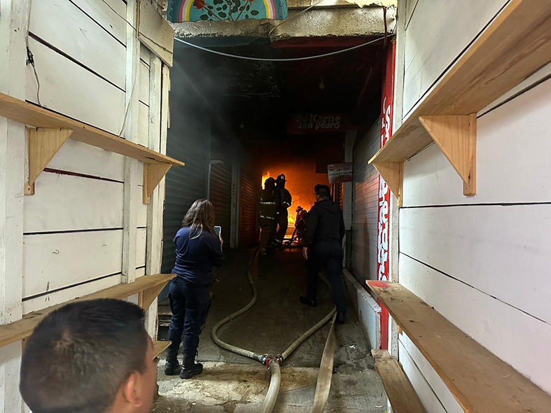 El incendio se registró alrededor de las 6:35 de la mañana y varios locatarios trataron de sofocar las enormes llamas, pero sus esfuerzos fueron insuficientes, por lo que personal de bomberos acudió al lugar y sofocó la conflagración hasta las 7:40 de la mañana.