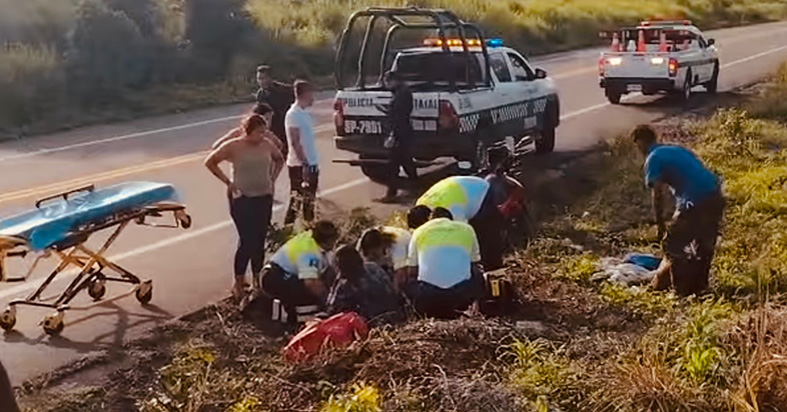 El hecho ocurrió en la vía que va de Ocozocoautla a Las Choapas, en el kilómetro 55, hasta donde llegaron los servicios de emergencia para brindarle los primeros auxilios a los tres ocupantes de la motocicleta accidentada.