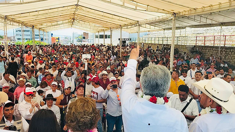 El magistrado acudió como invitado especial de la Confederación Nacional del Campo (CONFENACAM) y durante el mitin le pidió a los campesinos chiapanecos su voto en la encuesta para defi­nir al candidato de MORENA a la gubernatura en 2024.