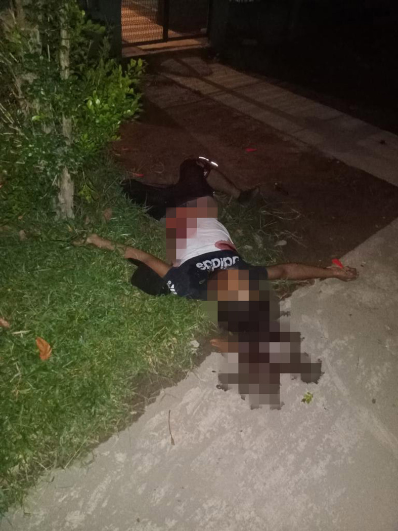 Sobre la calle Jazmines, entre Central Sur y calle Cascabel de la colonia Benito Juárez, localizaron el cuerpo de una persona del sexo masculino, presunto integrante de la banda Barrio 18, de acuerdo a los tatuajes que presenta en el pecho.