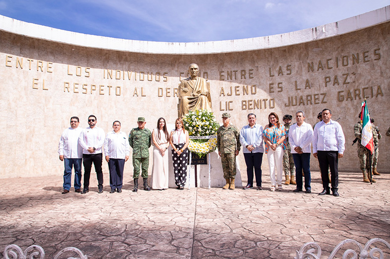 Acompañada del comandante de la XVI Región Naval, Fernando Al­fonso Angli Rodríguez; el comandante del IV Regimiento de Caballería de la 36ª. Zona Militar, David González Carrasco y la presidenta honoraria del Sistema DIF, Irene Rubiera Urbina, la alcaldesa destacó el legado de Benito Juárez, “es el presidente de México que vertebra a nuestro país en sus horas cruciales y el que nos consolida como nación independiente y soberana”.