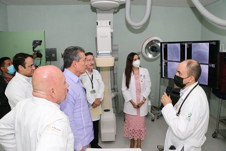 “Me da gusto constatar la instalación de esta unidad médica especializada de hemodinamia, la cual cuenta con insumos, medicamentos y un esquema avanzado y moderno para la atención del corazón, sin llegar a una operación a corazón abierto”, señaló al destacar que con esta obra, junto con la unidad de hemodiálisis, el servicio de resonancia magnética y terapia intensiva, se completa el círculo para el cuidado de la salud en Tapachula.