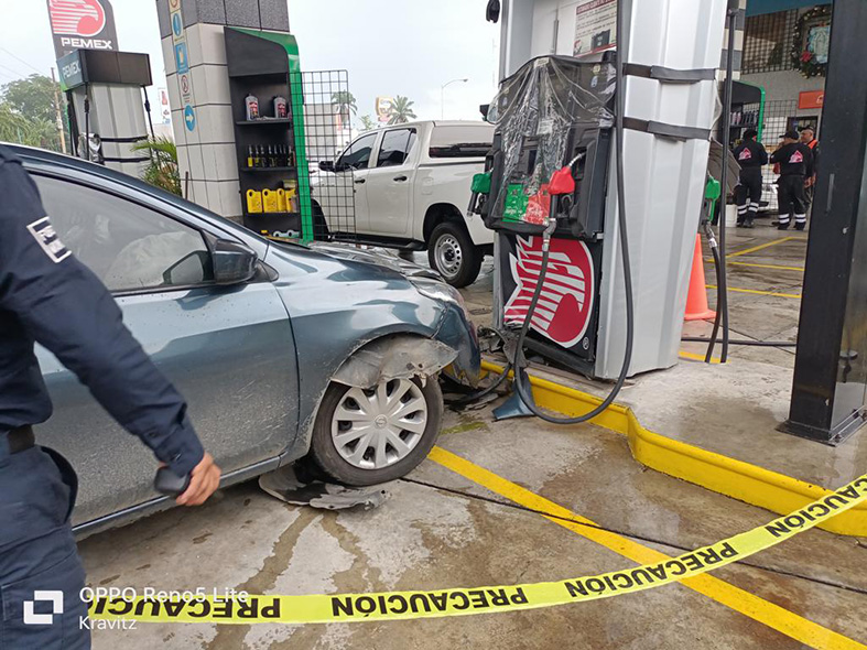 El conductor del vehícu­lo es un hojalatero y el taller se encuentra en el fracciona­miento bonanza, de dónde sacó el vehículo para ir a com­prar unas piezas, tomando la unidad que reparaban y ter­minó impactándose contra una bomba de gasolina.