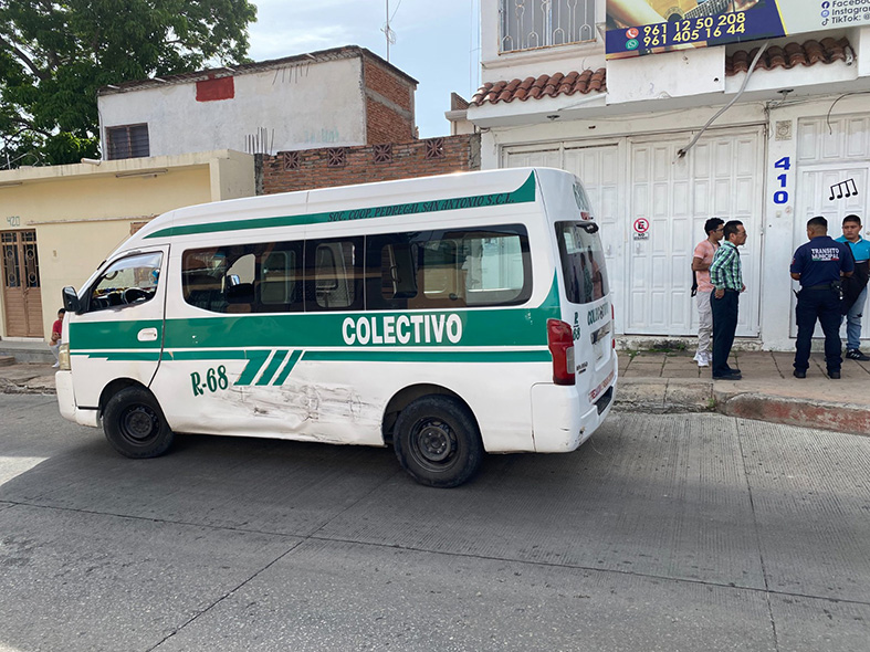 La mañana de ayer se registró un choque entre una camioneta particular y un colectivo de la ruta 68 en el cruce de la 4ª calle oriente y la 3ª avenida norte del centro tuxtleco.