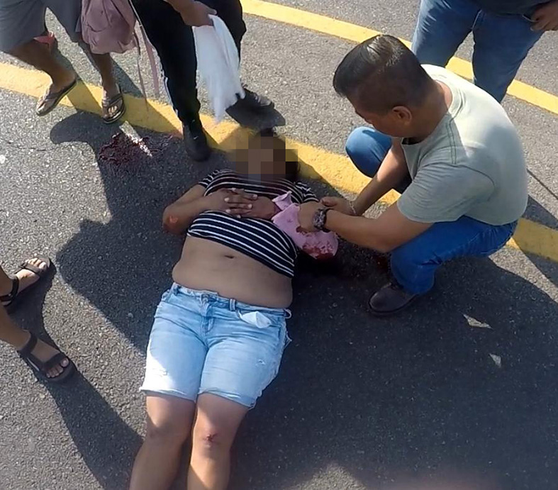 Alrededor de las 8 de la mañana de ayer, reportaron al centro de emergencia c5, que a la altura del kilóme­tro 12 más 400, Tapachula – Puerto Madero, a la altura del albergue de migrantes, se encontraba una mujer tirada en el pavimento.