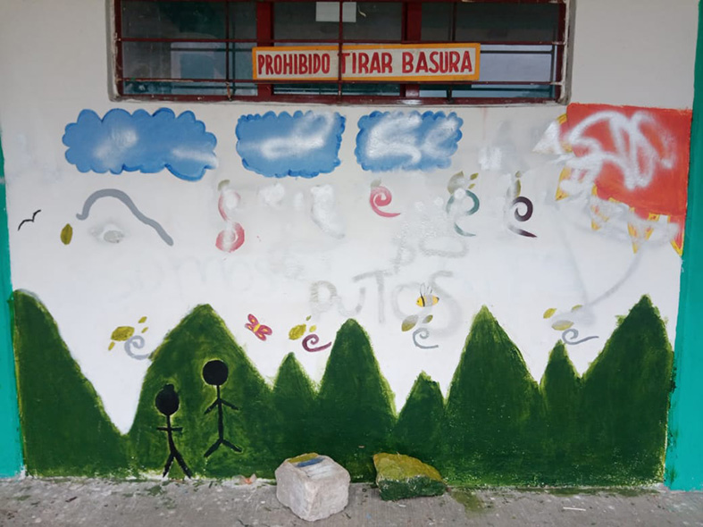 “Denunciamos los actos de vandalismo de los murales rea­lizados dentro de las actividades denominados huella Comunita­ria el pasado 7 de julio de 2023, evento realizado por las niñas y niños, hacemos mención que fueron estropeados con pintas y palabras obscenas, de igual manera los árboles endémicos sembrados, atentando contra el trabajo comunitario del Se­millero Creativo de Títeres en Lengua Tseltal”, dijeron.