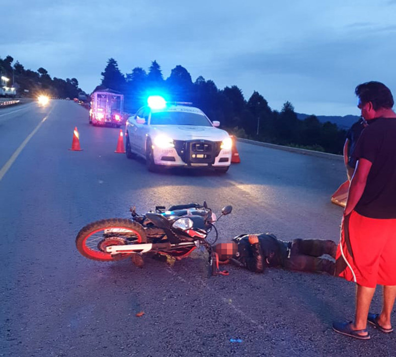 El conductor de una mo­tocicleta fue alcanzado por un vehículo sobre el tramo San Cristóbal a Chiapa de Corzo, a la altura del Kilómetro 37, lo que le provocó lesiones.