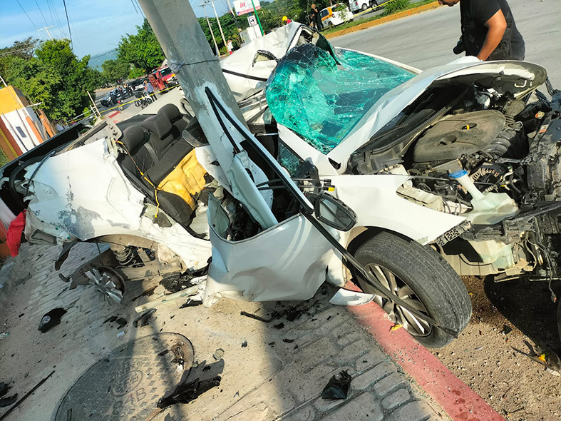 La unidad en la que viajaban chocó por alcance con un taxi y debido al acceso de velocidad con que conducían se incrustaron en un poste