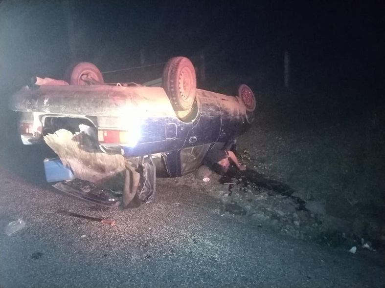 Alrededor de las nueve de la noche de este sábado reportaron al centro de emergencia que afuera de la cinta asfáltica, sobre una cuneta, se encontraba una persona sin vida en un vehículo Nissan de color azul, con placas del estado de Chiapas.