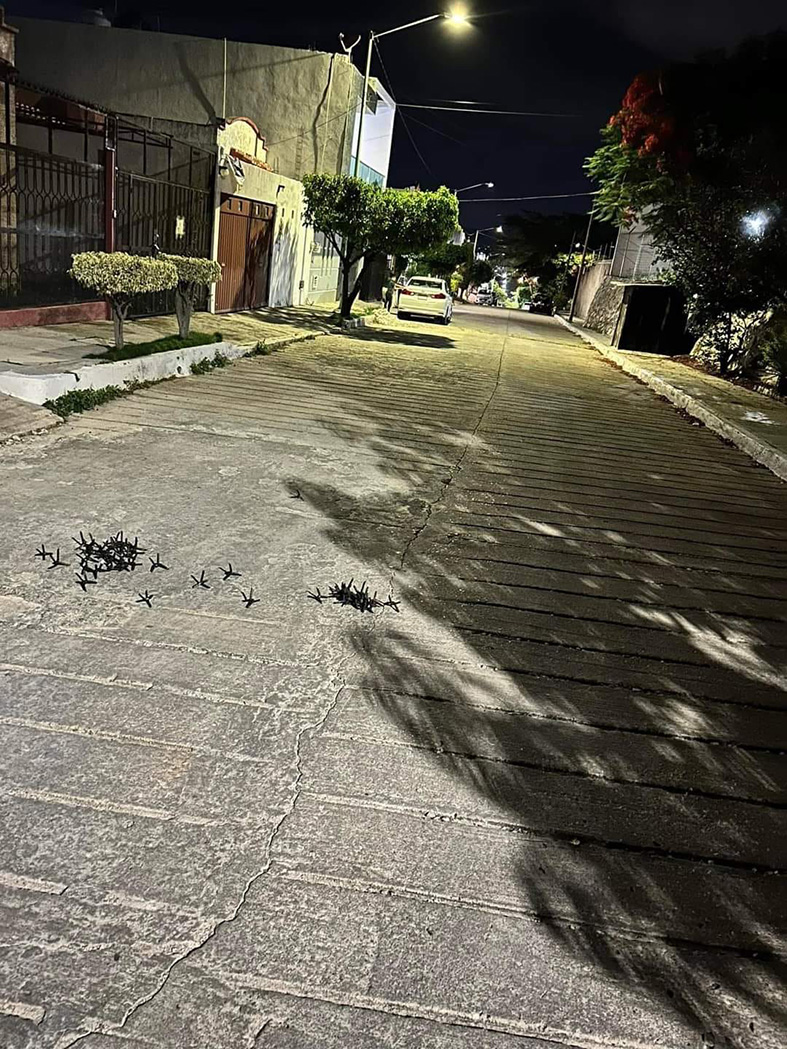 Es la segunda vez que habitantes de colonias advierten de objetos punzo cortantes en las calles para pinchar los neumáticos de autos