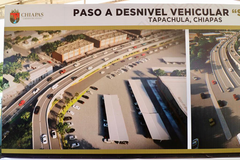 En su gira de trabajo por Tapachula, el gobernador Rutilio Escandón Cadenas colocó la primera piedra del Paso a Desnivel Vehicular San Juan, el cual favorecerá la movilidad tanto de automovilistas como de peatones, y mejorará la imagen urbana, la seguridad y el desarrollo de este municipio.