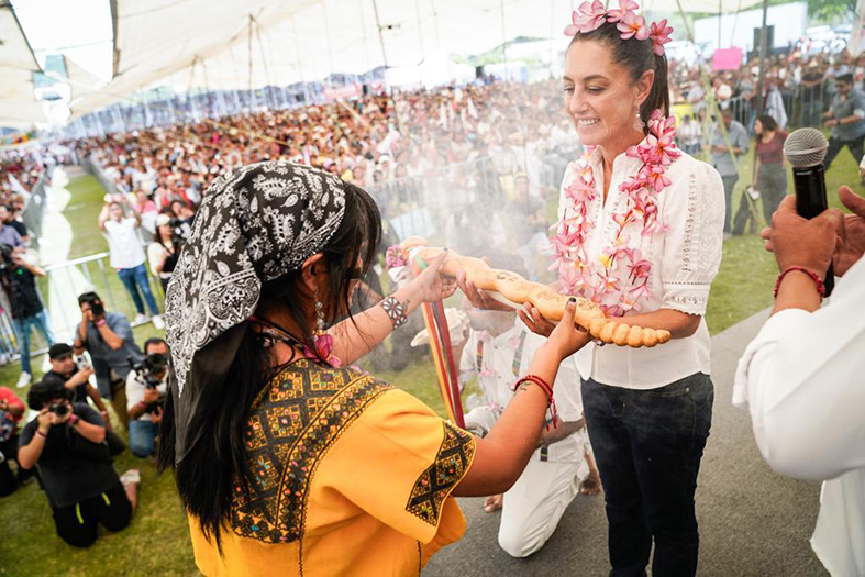 Al comienzo del evento, Claudia Sheinbaum recibió el Bastón de Mando de manos de representantes de los pueblos originarios de Izúcar de Matamoros, un reconocimiento que representa la voz de las comunidades, acompañado por el sonido de los caracoles que se hicieron escuchar a los cuatro vientos, ‘’en este bastón que el día de hoy, depositamos los tres ideales de la libertad, la justicia y la dignidad, y sabemos que no nos va a fallar’’, le señalaron.