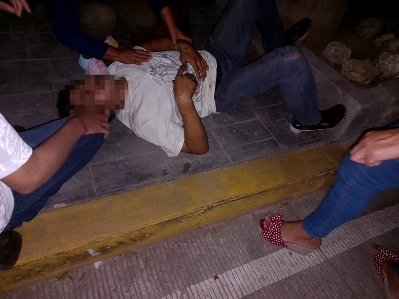 Más tarde, paramédicos de la Cruz Roja Mexicana se presentaron para la valoración del sujeto, mismo que presentaba múltiples golpes y escoriaziones, siendo trasladado a un hospital para su atención médica