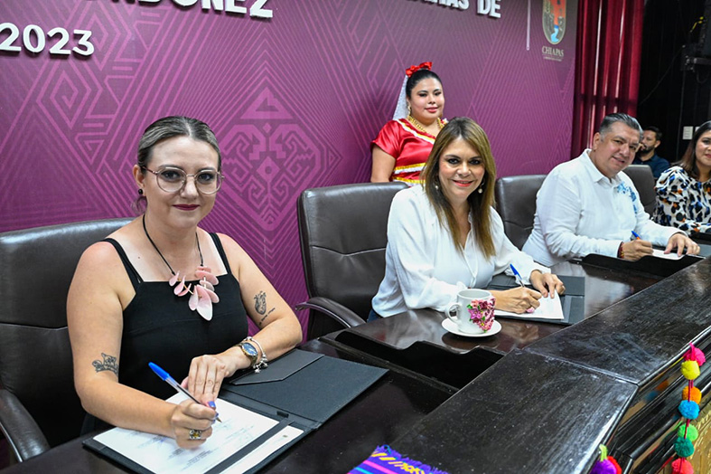 La presidenta municipal Rosa Irene Urbina Castañeda y la directora general de Co­neculta, Maritsa Concepción Maranto Zepeda, firmaron el documento mediante el cual se promoverán las acti­vidades artísticas y culturales que se realizarán en diversas sedes, incluyendo comunida­des rurales.