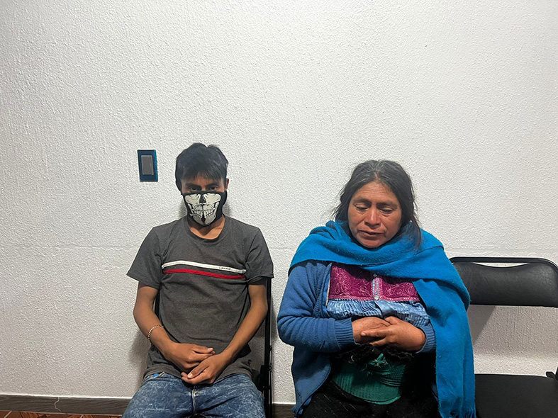 La abuelita no habla español, por lo que una traductora dijo que se llama Rosa Pérez López fue despojada de sus tierras y ca­sas, porque las autoridades de la comunidad la señalan que estaba realizando actos de brujería.