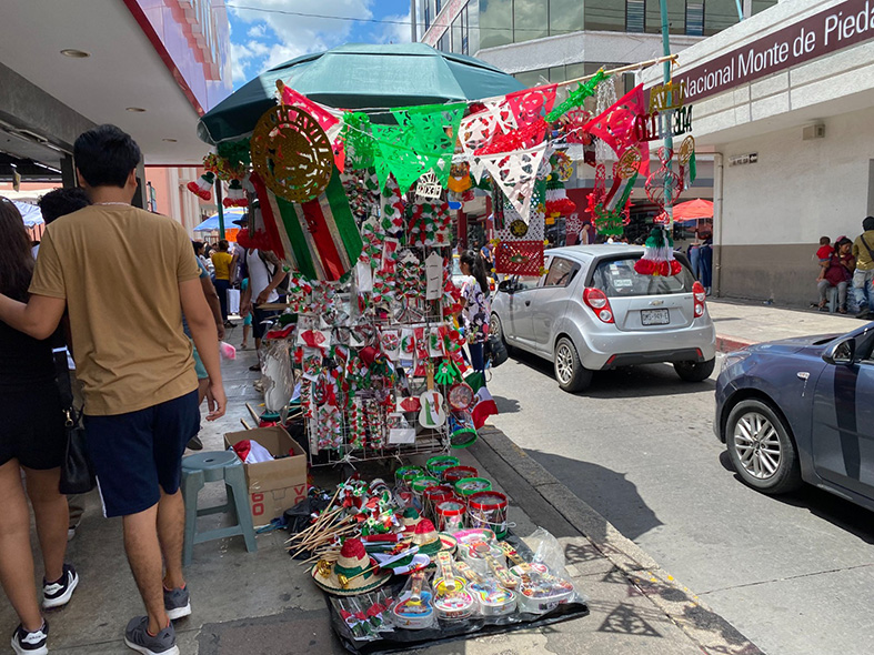 Aún no termina agosto y ya se venden adornos de las Fiestas Patrias en la capital chiapa­neca, desde el pasado fin de semana en las calles aledañas a los mercados del centro tu­xtleco se pueden encontrar puestos dedicados a la venta de estos artículos.