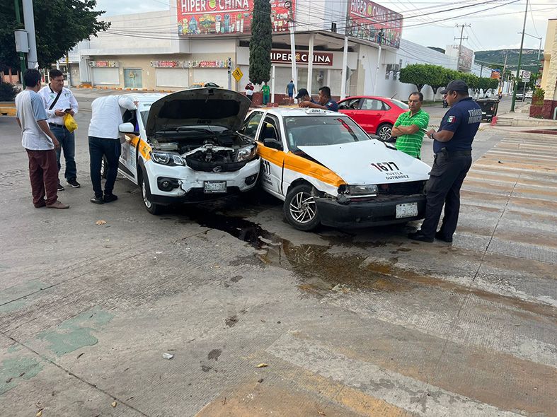 La falta de precaución provocó que el conductor de un vehículo marca Nissan tipo Tsuru con número económico 16-77 en modalidad de Taxi impactara contra la unidad marca Renault con número económico 26- 80, esto debido a que ninguno respetó el cambio de luces del semáforo.
