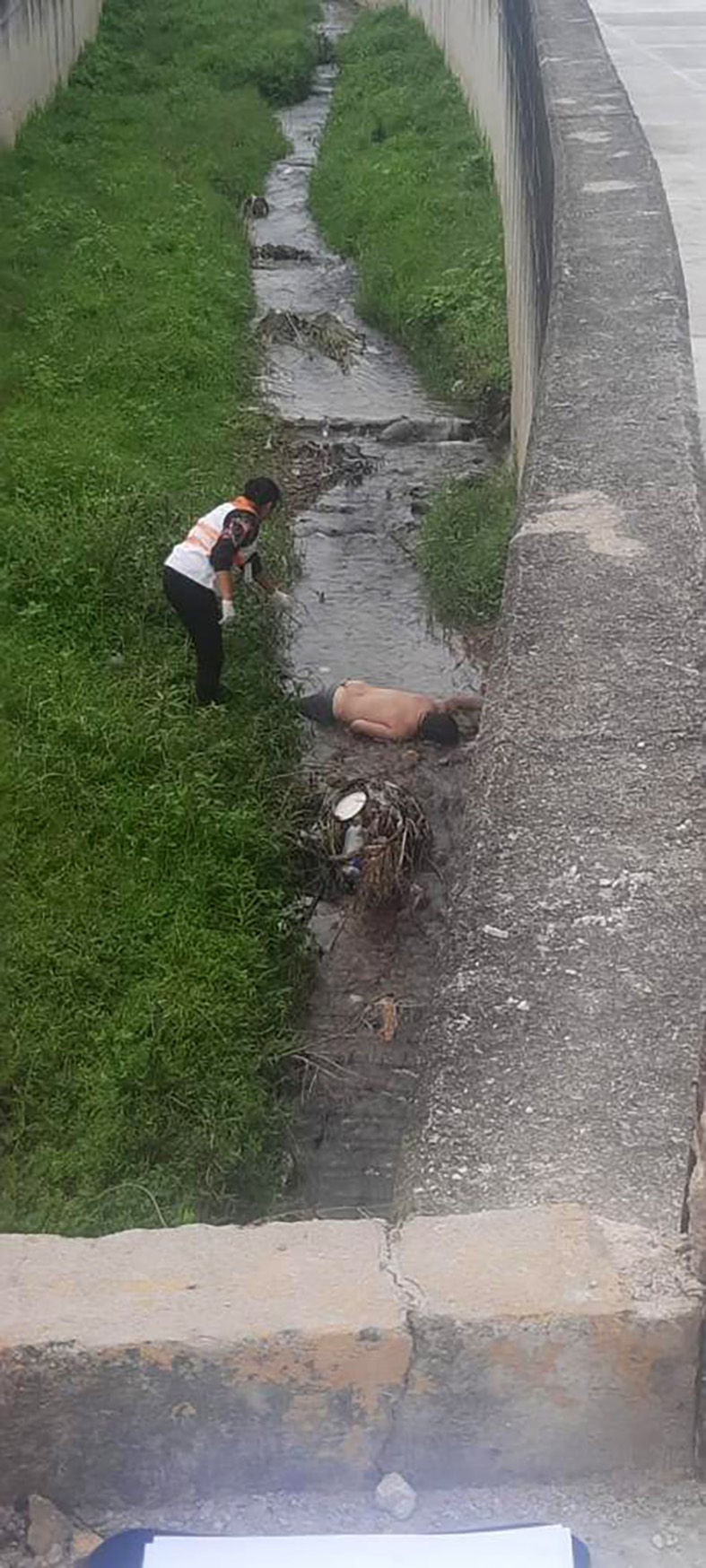 Un grupo de niños que caminaban hacia la escuela primaria 10 de abril, cuando encontraron el cuerpo sin vi­da de un persona, quien estaba tirada al interior del río Xelajú.