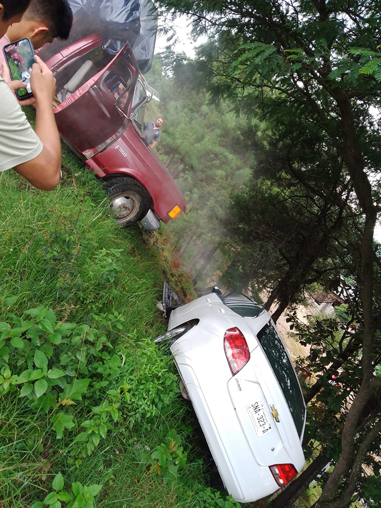 Tres lesionados y cuantiosos daños materiales es el saldo del choque de dos vehículos sobre el tramo San Cristóbal a Teopisca, a la altura de la curva de la comunidad de San Jerón.