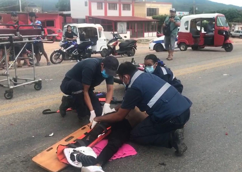 Fue así que minutos después llegaron personal paramédicos de Bomberos para brindarle los primeros auxilios al motociclista, de quien a primer golpe de vista, se supo que presentaba una fractura expuesta en una de sus piernas, además de que tenía lesiones en la cabeza, por lo que fue necesario inmovilizarlo de inmediato y subirlo a la ambulancia para apresurar el traslado, ante la gravedad del asunto.