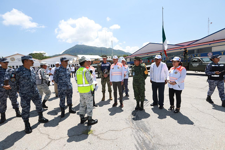 Tras atender el informe del parte de novedades del simulacro, Escandón Cadenas reconoció el trabajo que realiza el Ejército Mexicano con el Plan DNIII-E, la Marina con el Plan Marina, la Guardia Nacional con el Plan Guardia Nacional, y las corporaciones federales, estatales y municipales de seguridad, de protección civil y de salud, quienes, de manera sensible y solidaria, apoyan y brindan ayuda humanitaria a las personas que lo necesitan.