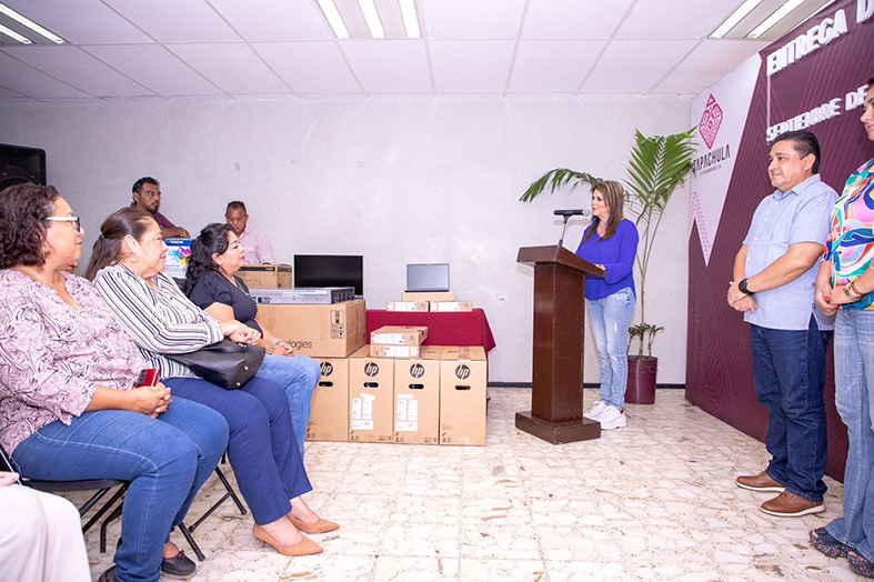 La alcaldesa de Tapachula, Rosa Irene Urbina Castañeda, hizo entrega de equipos informáticos a diferentes dependencias del gobierno municipal, que permitirá no solamente optimizar las actividades administrativas sino también mejorar la atención a la ciudadanía.