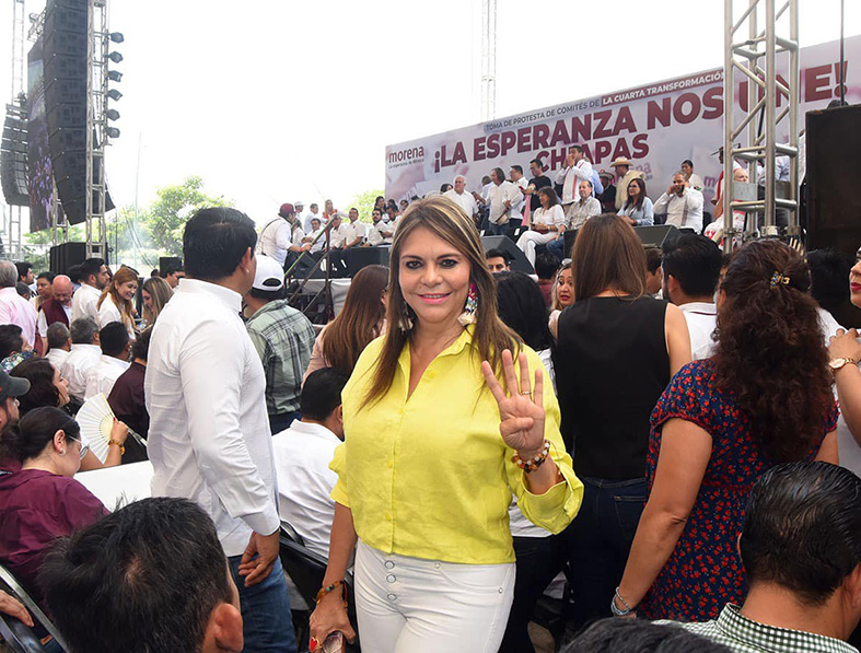 “En mi calidad de consejera Estatal del Distrito XII del Movimiento de Regeneración Nacional (Morena), asistí a la firma del Acuerdo de Unidad por la Transformación en Chiapas, encabezada por la coordinadora nacional de los Comités de Defensa de la Transformación, Claudia Sheinbaum”.