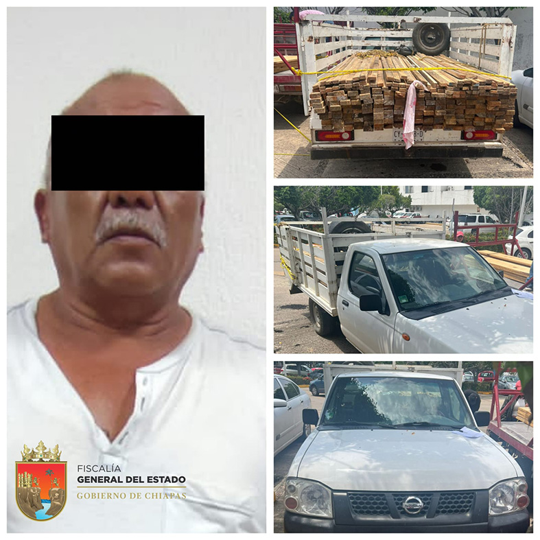 Elementos de la Policía de Investigación adscritos a la Fiscalía Ambiental de la Fiscalía General del Estado(FGE) detuvieron en flagrancia a una persona como probable responsable del delito de Ecocidio en su modalidad de Transporte de Recurso Forestal Maderable sin la Documentación Correspondiente emitida por la Autoridad Competente, en Tuxtla Gutiérrez, Chiapas. Quien se identificó como Ramón“N” de 61 años de edad, originario de Tuxtla Gutiérrez, Chiapas, conducía un vehículo color blanco marca Nissan estaquitas, el cual transportaba Producto Forestal Maderable(reglas y barrotes). Al ser revisado en el puesto de control denominadoC3-La Pochota, de Tuxtla Gutiérrez, Chiapas se le solicitó la documentación que acreditara la legal procedencia y transporte del recurso forestal maderable, mismo que presentó una factura fiscal.Al verificarlo, dicho documento no contaba con código de identificación forestal, por lo cual el conductor fue puesto a disposición del Fiscal del Ministerio Público adscrito a la Fiscalía Ambiental, quien se encargará de determinar su situación jurídica en el término constitucional. El vehículo y el cargamento fueron asegurados. La Fiscalía General del Estado refrenda su firme compromiso con las y los chiapanecos para garantizar el Estado de Derecho y reitera que ninguna conducta delictiva quedará impune.