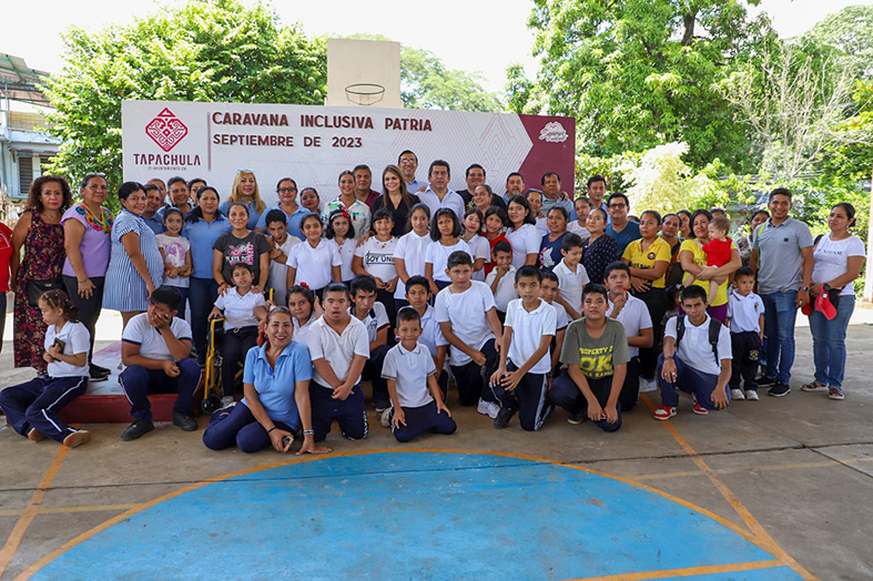 La presidenta municipal, Rosa Irene Urbina Castañeda, encabezó la Caravana Inclusiva Patria, en el Centro de Atención Múltiple Roberto Solís Quiroga, de esta ciudad, como parte de las estrategias implementadas por el Ayuntamiento para fomentar los valores cívicos entre la niñez tapa- chulteca.