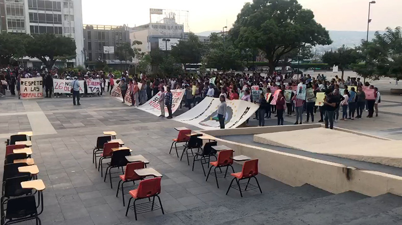 En su discurso los normalistas recordaron que la noche del 26 de septiembre del año 2014, en Iguala, Guerrero, 43 estudiantes de la Escuela Normal Rural ‘Raúl Isidro Burgos’ de Ayotzinapa, de entre 17 y 25 años, fueron desaparecidos sin dejar rastro alguno. Cabe señalar que esta marcha se suma a las movilizaciones a nivel nacional que ocurren en medio de jornadas de lucha, organizadas en diversas entidades para apoyar la exigencia de los padres de los 43 por recibir la información completa sobre el caso.