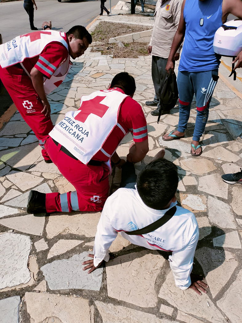 Tras esto, transeúntes dieron aviso a los números de emergencia, los cuales alertaron a los oficiales de Tránsito y Vialidad Municipal quienes luego de su arribo solicitaron la unidad médica. Paramédicos de la Cruz Roja Mexicana se presentaron para la valoración de Kevin, el cual presentaba probables fracturas, por lo que fue trasladado por los galenos a la Clínica del IMSS 5 de Mayo para su atención médica correspondiente.