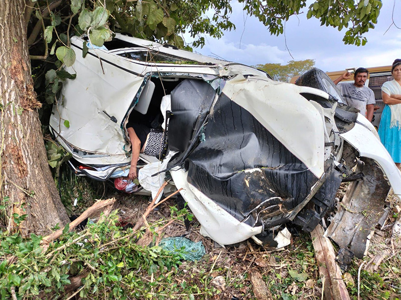 Dos personas fallecieron en un accidente, sobre la carretera Mapastepec – Roberto Barrios a la altura de la ranchería Los Mendoza, correspondiente al municipio de Mapastepec. El vehículo se encontraba fuera de la carretera de terracería volteada de un costado sobre el lado izquierdo y en el interior se encontraban dos personas; una de sexo masculino y otra de sexo femenino, las cuales no contaban con signos vitales, las personas fallecidas respondían a los nombres de Emilia “N” de aproximadamente hace 60 años y Porfirio “N” aproximadamente 92 años de edad con domicilio en el rancho el Marfil del Ejido Roberto Flores Barrios del municipio de Mapastepec.