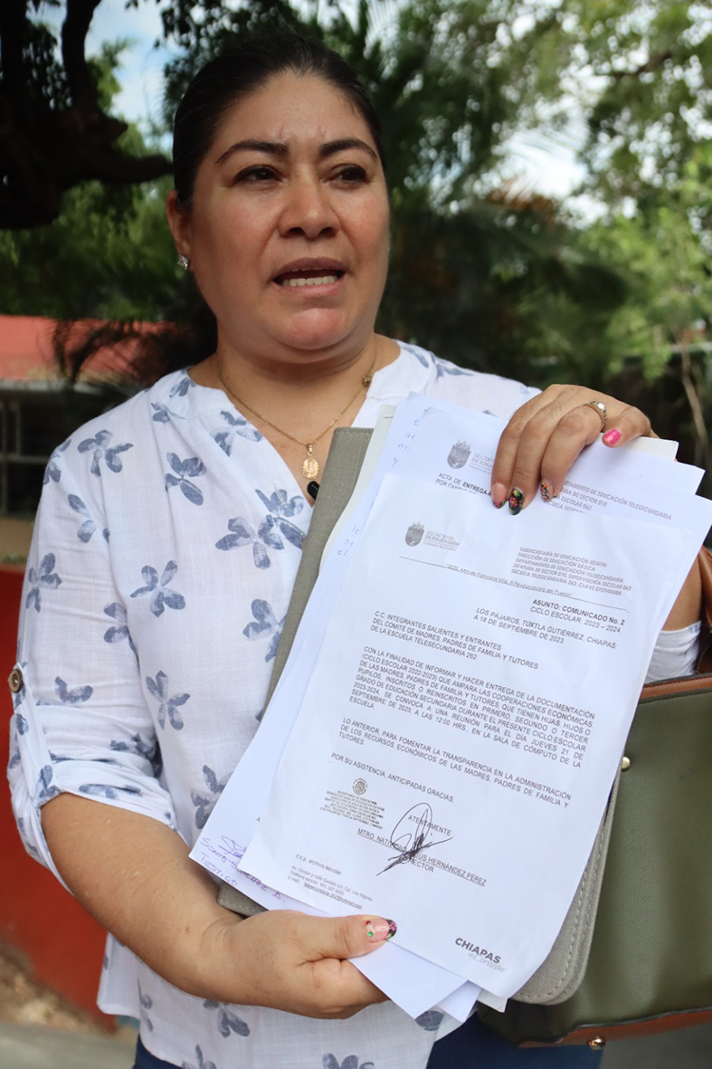 De acuerdo con Esmeralda Rosas, la presidenta del Comité, al pedir cuenta al pasado comité siempre respondieron con evasivas, y no llevó a cabo este proceso que se lleva a cabo en cada cambio de ciclo. Señalaron concretamente a la pasada tesorera, a quien le han hecho el llamado para que se rindan cuentas, de los ingresos y egresos del ciclo anterior y del ciclo 2023-2024 La señalada ha sido identificada como Karla Yaneli, quien únicamente dejó una hoja y un sobre en una mesa con 900 pesos en su interior. “Hizo esa acción y se retiró de la escuela, no rindió cuentas, dijo que no está obligada a hacerlo, sin embargo, no está nada claro el destino de las cuotas escolares”, indicó.
