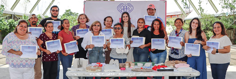 El Sistema DIF Tapachula, a través de la Coordinación de Desarrollo Humano y Relación Social, llevó a cabo de manera exitosa el curso “Elaboración de moldes y figuras de yeso”, a fin de promover talleres de capacitación para el autoempleo. La presidenta honorífica Irene Rubiera Urbina, hizo entrega de los reconocimientos a quienes formaron parte de este curso que se realizó durante tres días.