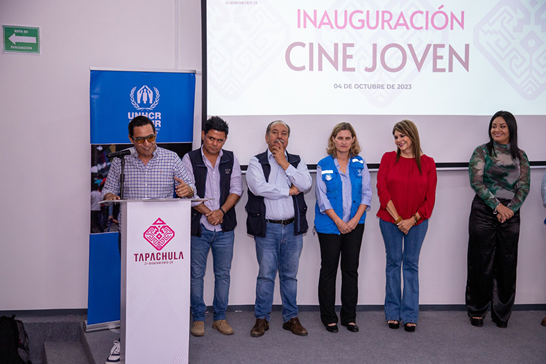 La Agencia de la ONU para los Refugiados (ACNUR) entregó una sala de cine y multimedia a la Secretaría de la Juventud y Deporte del Ayuntamiento de Tapachula, construida dentro del Centro de Convivencias-Te­rritorio Joven, es un espacio se­guro de esparcimiento y sana interacción social entre la ju­ventud tapachulteca y la juven­tud refugiada y en situación de movilidad.
