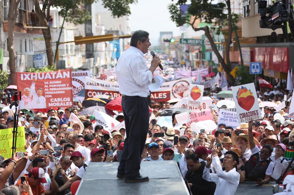 Son las 9:30 de la mañana, entre gritos de ¡gobernador, gobernador!, miles de ciudadanos se concentran en la zona poniente de la capital para mostrar su respaldo a Carlos Morales Vázquez, en su camino a la coordinación de los Comités para la Defensa de la Cuarta Transformación.