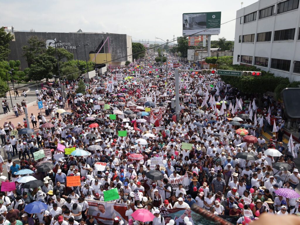 La marcha del obradorismo verdadero rebasó las expectativas; más de 35 mil personas acompañaron al alcalde tuxtleco con licencia; llamó a la unidad de todos los sectores de la sociedad y aconsejó que no se permita la introducción de la simulación a la cuarta transformación