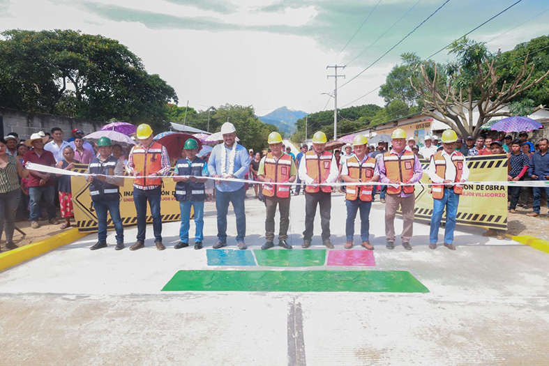 En gira de trabajo el Presidente Municipal Robertony Orozco Aguilar, acompañado de regidores y funcionarios del gabinete municipal inauguró 3 Mil 637 metros cuadrados de pavimentación de calle con concreto hidráulico reforzados con malla-Lac, la vía de la Primera Sur Poniente que comunica al panteón ejidal de esa localidad.