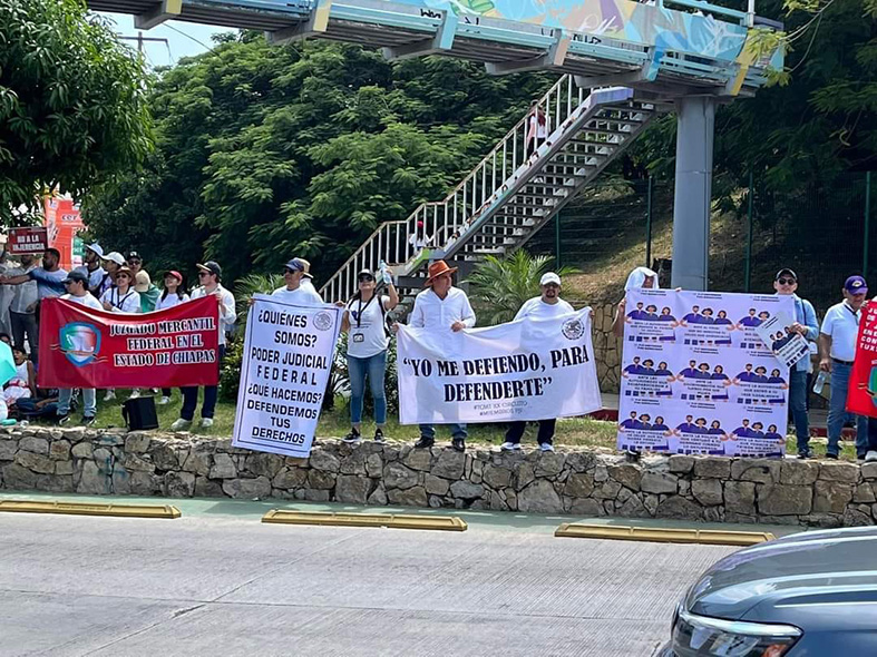 “De mi salario el pago de combustible, el pago de desgaste de la unidad, las llantas, el que a veces nos envían a lugares de peligro, poniéndonos en riesgo, los senadores, los diputados no lo ven, hay compañeros que se han infartado acá”, detalló una de las trabajadoras del Juzgado Cuarto de Distrito en Materia de Amparo en Tuxtla Gutiérrez.