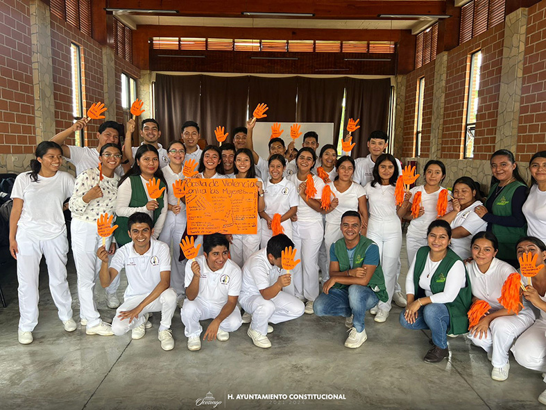 El 25 de cada mes se conmemora el Día Naranja, un día para actuar, concientizar y prevenir la violencia contra las mujeres y niñas. Por ello, el Ayuntamiento Municipal de Ocosingo que dirige el presidente Gilberto Rodríguez de los Santos, a través de Coordinación de Salud Municipal, se suman este día llevando a cabo acciones y actividades dirigidas a movilizar conciencias, así como fomentar la cultura de la NO violencia hacia las mujeres y niñas. En esta ocasión, fue a través de alumnos de la Universidad Benito Juárez de esta cabecera municipal, a quienes también se les impartió activación física.
