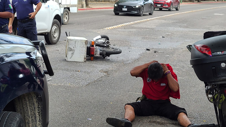 Con diversas escoriaciones y contusiones terminó un joven motociclistas al ser colisionado la tarde de este jueves sobre la prolongación de la 5 norte poniente frente al parque recreativo Caña Hueca. Brayan “N” de oficio Motorepartidor de una empresa de pollos asados informó que mientras se desplazaba en el carril de norte a sur una camioneta le salió a su pasó y lo impactó. Por su parte el conductor de la SUV marca Nissan tipo Xtrail de color roja detalló que él salió del mencionado parque e intentó incorporarse al Callejón Zapata, pero no vio al motorista. El choque fue frontal de ambas unidades, el tripulante del caballo de acero del impacto voló por los Aires y terminó tendido en el pavimento, al igual que su vehículo.