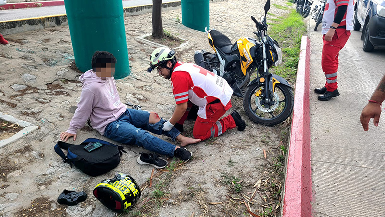 Un joven de aproximadamente 20 años de edad se accidentó la tarde de este martes mientras manejaba su unidad motorizada sobre el libramiento sur oriente frente al fraccionamiento La Misión de Tuxtla Gutiérrez. A versión del conductor, éste señaló que se desplazaba en el carril de Poniente a Oriente, pero al entrar al distribuidor Vial conocido como el Trébol perdió el control de su manubrio. “Venía conduciendo, pero me distraje un momento, después ya estaba cerca de la guarnición, no pude evitar chocar y salí disparado hasta quedar tirado entre los dos carriles” dijo el sujeto. Técnicos en urgencias Médicas de la benemérita institución de la Cruz Roja mexicana se presentaron en el lugar para brindarle los primeros auxilios al motorista, pero al presentar diversas contusiones y raspones únicamente fue atendido en el lugar. Agentes de tránsito y vialidad municipal que dieron fe del percance mencionaron que familiares se hicieron cargo del involucrado y su caballo de acero.