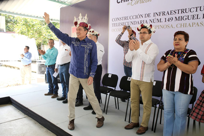 Al inaugurar la construcción de infraestructura educativa en la Escuela Telesecundaria número 149 Miguel Hidalgo y Costilla, de la localidad Espinal de Morelos en el municipio de Ocozocoautla de Espinosa, el gobernador Rutilio Escandón Cadenas destacó que en Chiapas se impulsan obras prioritarias en este rubro, con el objetivo de garantizar la cobertura educativa a niñas, niños y jóvenes, a través de espacios seguros y de calidad.