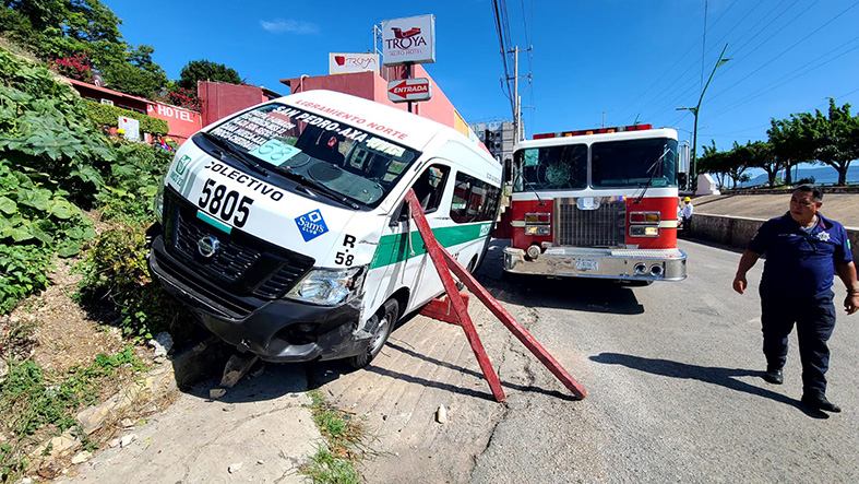 El colectivero presuntamente al ser chocado giró de manera intempestiva a su derecha, lo que hizo que la urvan subiera la banqueta y posteriormente terminara arriba de un muro de piedra y cemento.