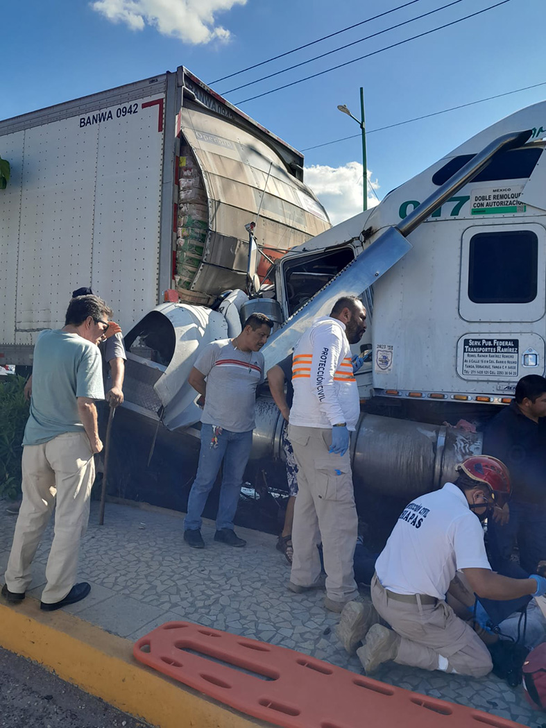 Una unidad de carga tipo tráiler con doble remolque presuntamente sin frenos provocó un accidente automovilístico la tarde este jueves sobre la carretera panamericana a la altura de plan de Ayala a la altura del CBTIS 233. Datos recabados señalaron que la pesada unidad circulaba en el sentido de poniente a oriente, pero presuntamente El chófer sufrió un fallo en el sistema de frenos, lo hizo que chocara contra otro trailer de color blanco. En el lugar fue auxiliado el chófer del vehículo responsable, el cual fue auxiliado por personal de la Cruz Roja y traslado a un hospital particular. Por el percance se vio afectado la vialidad, por lo que agentes de tránsito implementaron un operativo especial para desviar los vehículos al libramiento norte. A pesar de lo aparatoso no hubieron más lesionados, dos grúas de gran dimensión se encargaron de trasladar los vehículos a un corralon en turno, hasta deslindar responsabilidades.