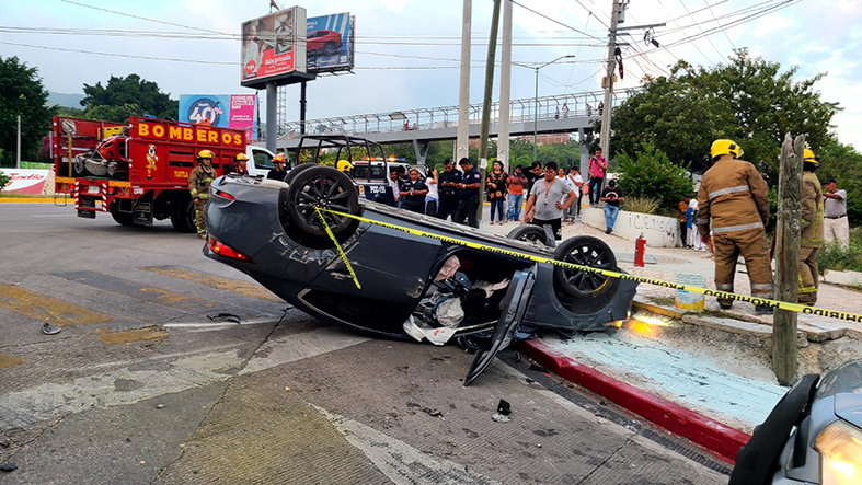 Se presume que del fuerte impacto el sedán giró más de 180 grados hasta caer con las cuatro llantas hacía arriba y después se arrastró más de 30 metros sobre la cinta asfáltica.