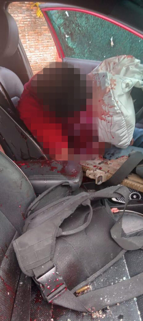 Mientras que las camionetas siguieron al tripulante que viajaban en la camioneta Kia de color rojo donde le tiraron de balazos, y asesinaron a dos personas, al conductor y otra persona que viajaba del lado izquierdo. En el lugar también quedaron dos personas lesionadas quiénes se resguardaron en una casa, ambas personas de 22 años, originarios de Durango, de nombre Daniel “N” quien presenta un impacto de bala en la pierna y otra en el abdomen, la otra persona de nombre Jonhatan “N” quien presentaba dos impactos de bala en el cuerpo. Los elementos de la policía estatal preventiva. Guardia Nacional, secretaría de la defensa nacional, policía municipal, dispusieron que los lesionados detenidos quienes tenían chalecos antibalas y varios cargadores de arma larga, fueran atendidos por paramédicos de servicios auxiliares de emergencia y cruz roja, quiénes se negaron de dar más datos de las personas lesionadas. Sobre la carretera Tapachula – Tuxtla Chico a la altura de la Castrejón, dejaron una camioneta que presenta impactos de bala, donde se presumen iban los atacantes. Hasta el momento se desconoce la identidad de los dos fallecidos, quiénes fueron trasladados al servicio médico forense. Mientras que la persona femenina lesionada se encuentra recibiendo atención médica. La fiscalía de distrito inició una carpeta de investigación, por el delito de Homicidio, delincuencia organizada.