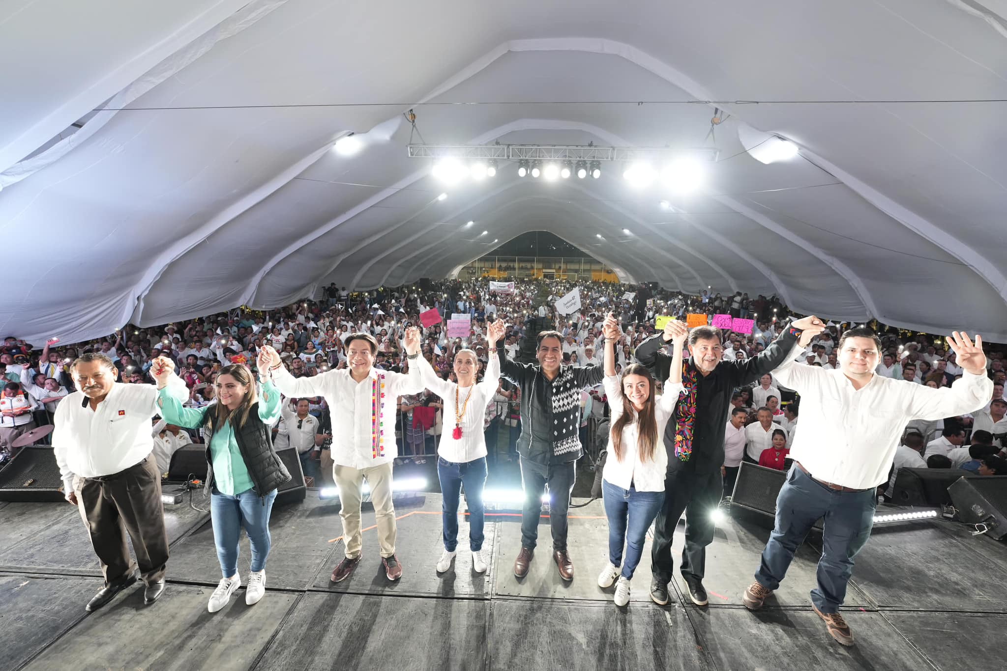 Ante más de 10 mil simpat izantes y militantes del Movimiento Regeneración Nacional (Morena), Partido del Trabajo (PT) y Partido Verde Ecologista de México (PVEM) que se dieron cita en el Parque Ganadero, Claudia Sheinbaum Pardo resaltó la importancia de cómo se ha construido la unidad del movimiento de transformación.