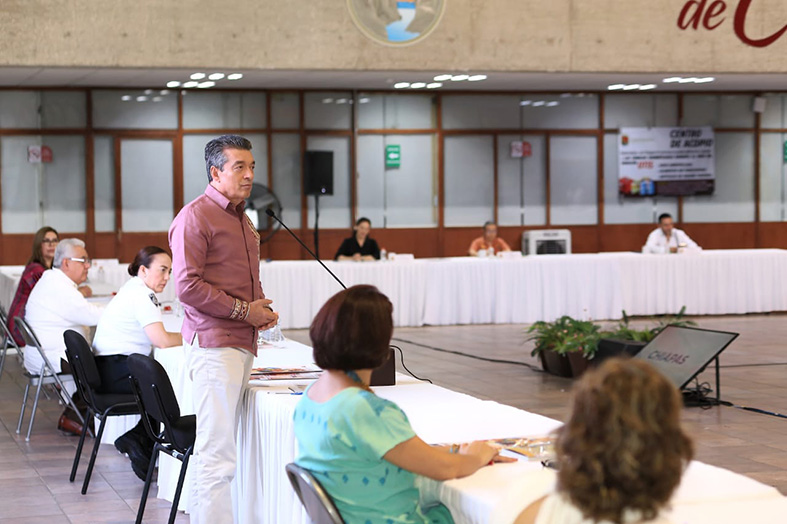 En este marco, el gobernador Rutilio Escandón reiteró el llamado a los habitantes y autoridades a seguir donando alimentos no perecederos, agua, pañales, leche en polvo y todo lo que sea necesario para apoyar de manera humanitaria a la población del estado de Guerrero, damnificada por el huracán Otis.